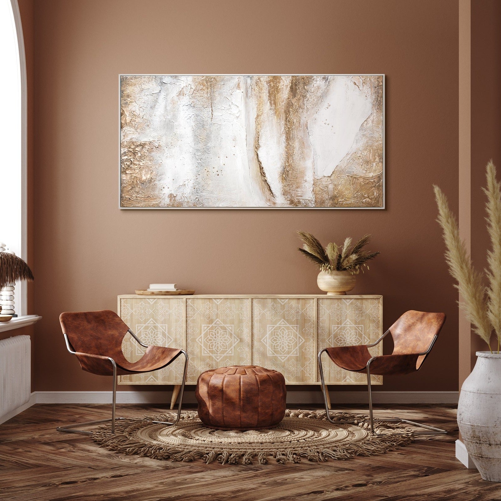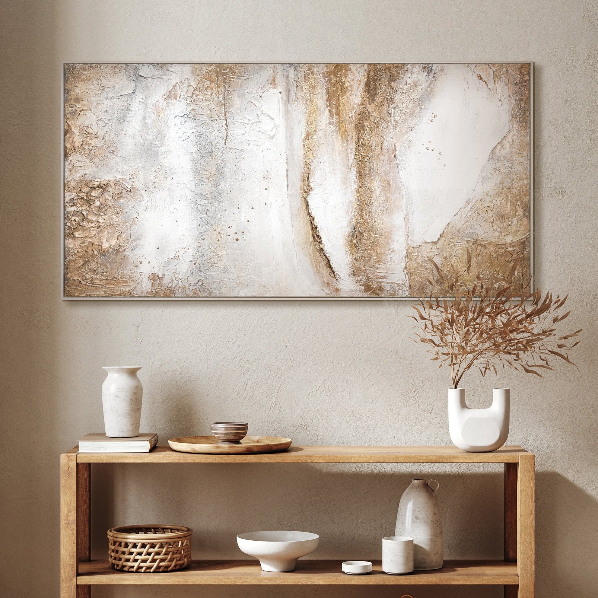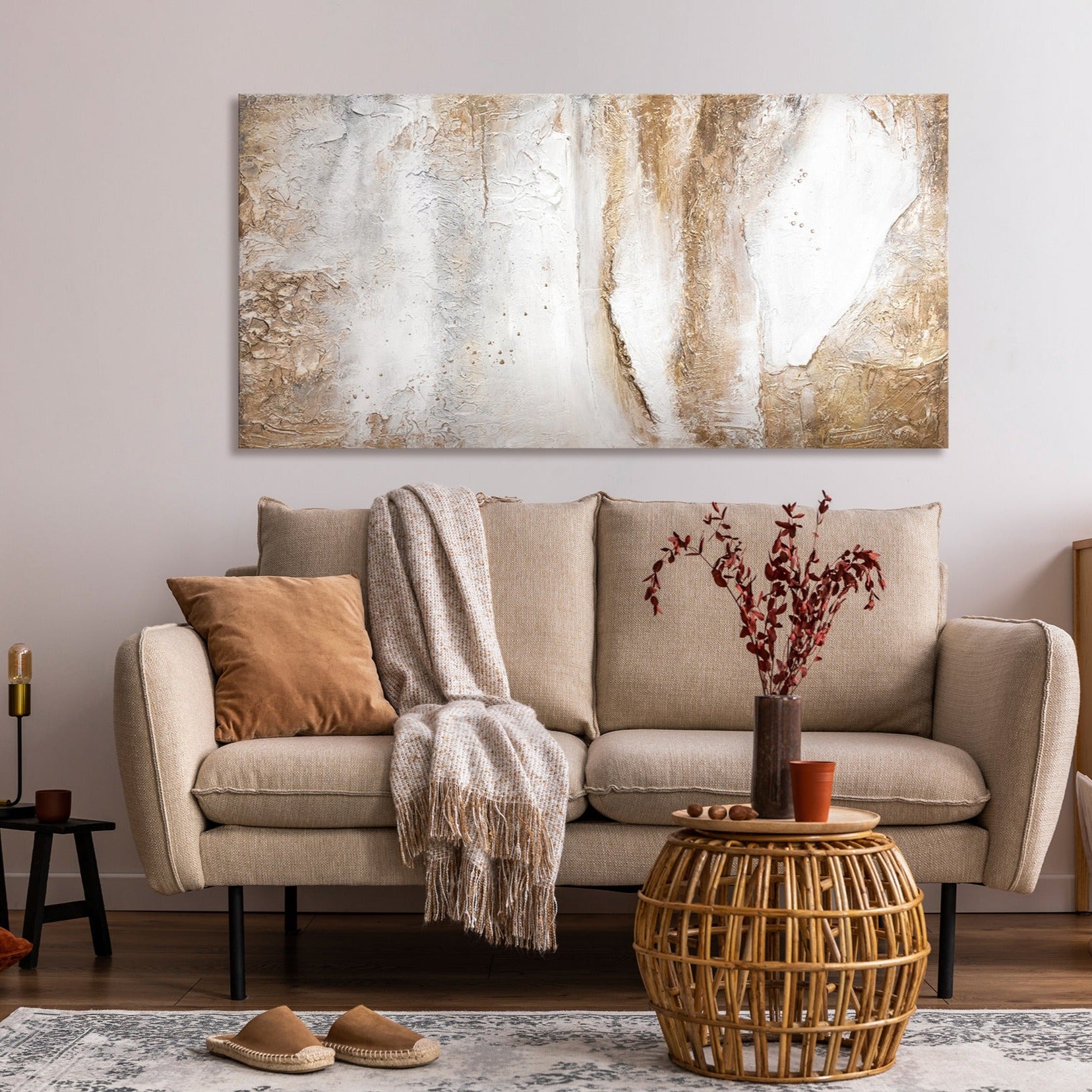 Oplev den udsøgte skønhed i abstrakte malerier på lærred med dette håndmalede mesterværk. De varme toner og fascinerende teksturer skaber en beroligende og elegant atmosfære i dit hjem. Dette kunstværk er 100% håndmalet, hvilket gør det til et unikt og originalt maleri. Vi leverer direkte til din dør med gratis levering.