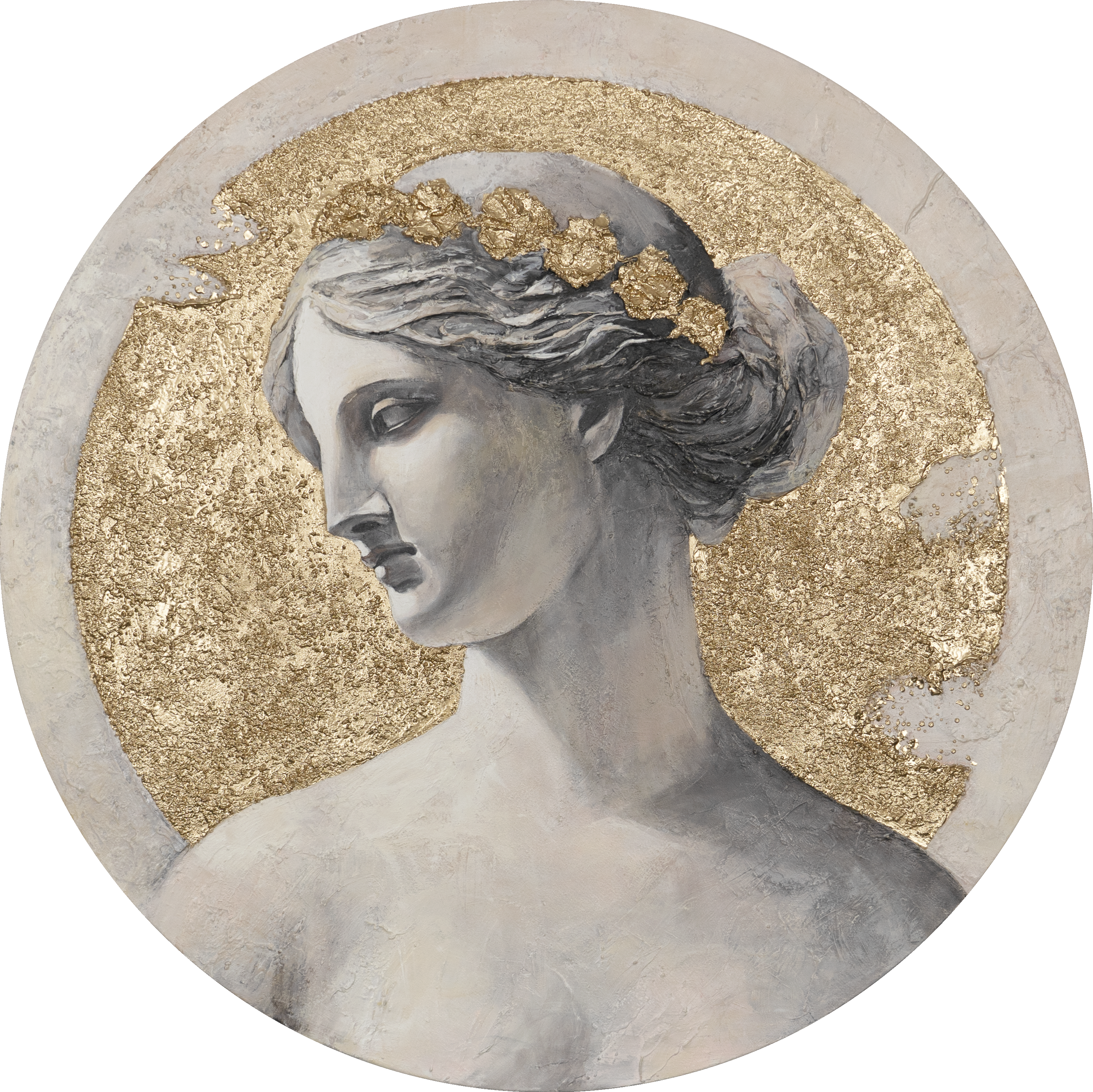 Føj et strejf af elegance til din indretning med "Muse of Light", et håndmalet rundt akrylmaleri inspireret af antikkens skønhedsidealer. De varme hvide og gyldne nuancer skaber en harmonisk balance, mens de fine detaljer giver værket dybde og raffinement. Den særlige lysende effekt fremhæver kunstværket i mørket og giver det et unikt, stemningsfuldt udtryk.