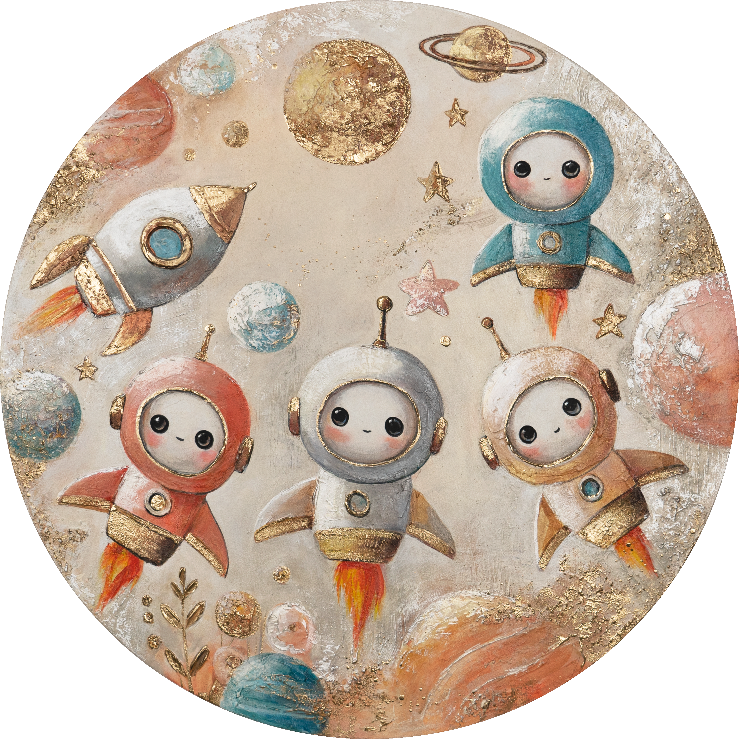 Udnyt vores gratis levering og få „Baby Astronauter“ – et kærligt udformet, håndmalet kunstværk, der begejstrer både børn og voksne. Perfekt som kreativ vægvægdekoration til børneværelset og meget mere.