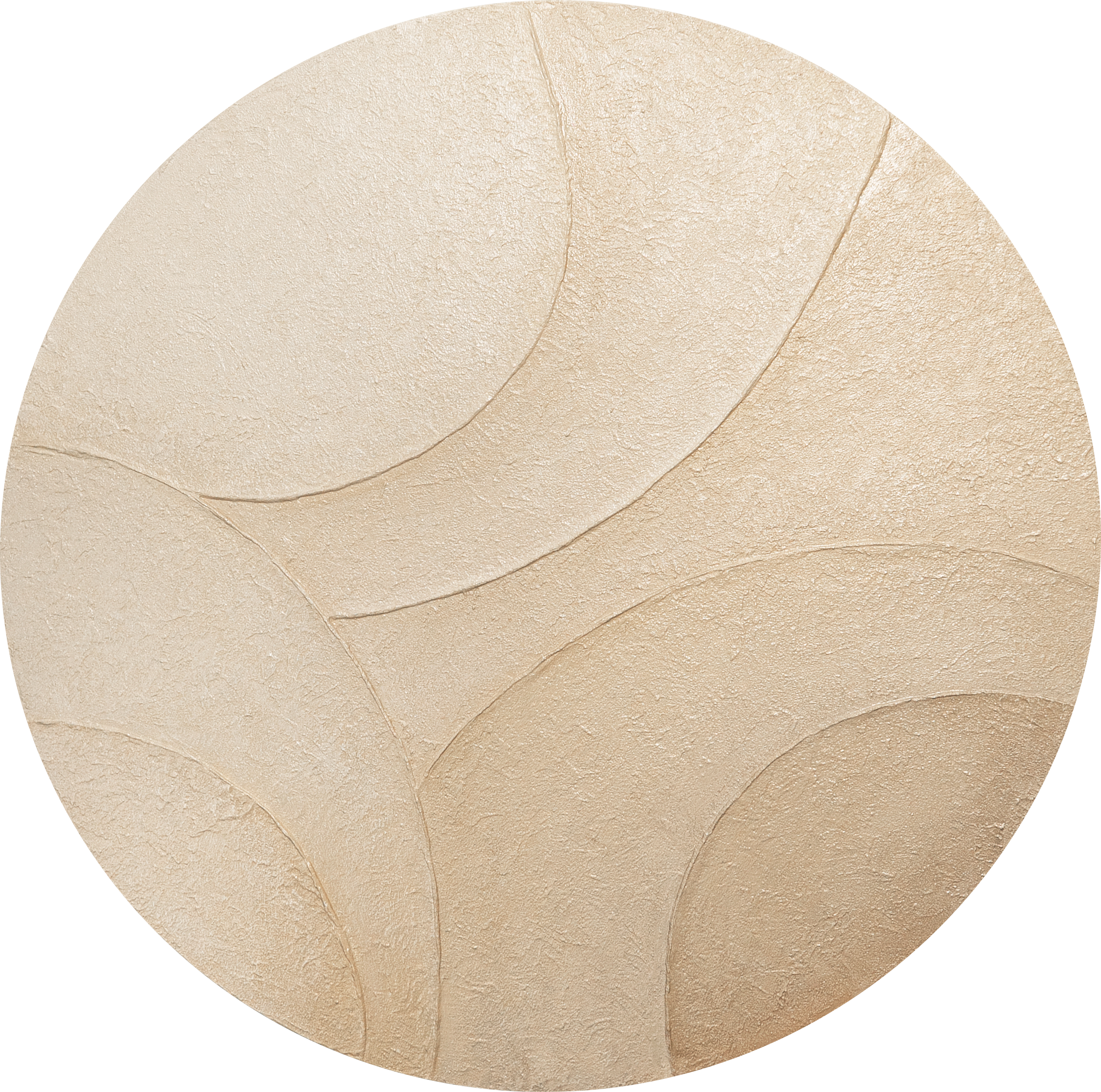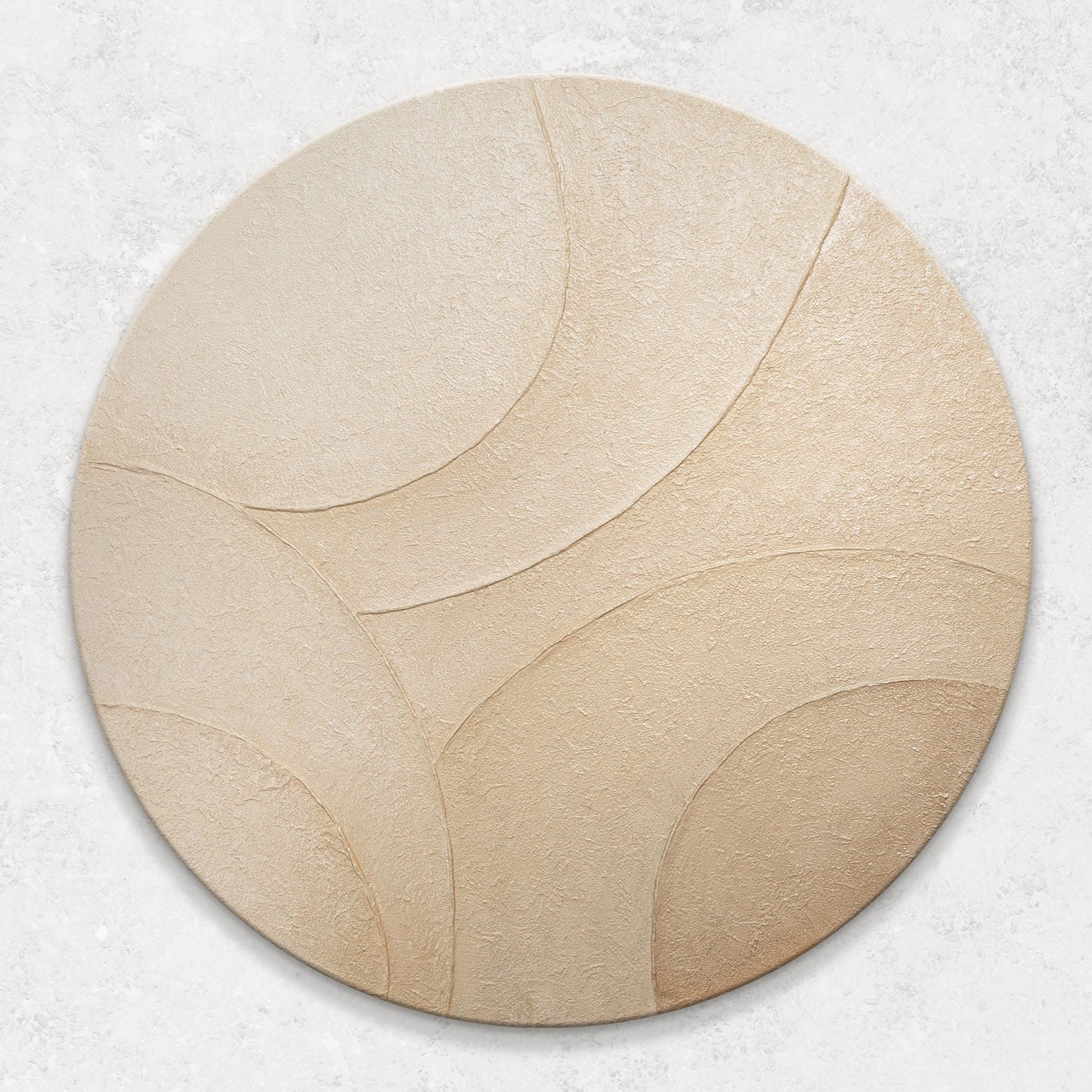 "Vindens ornamenter" forener bløde former, varme beige toner og struktureret overflade i et håndmalet rundbillede – et unikt kunstværk med ro, elegance og gratis levering.