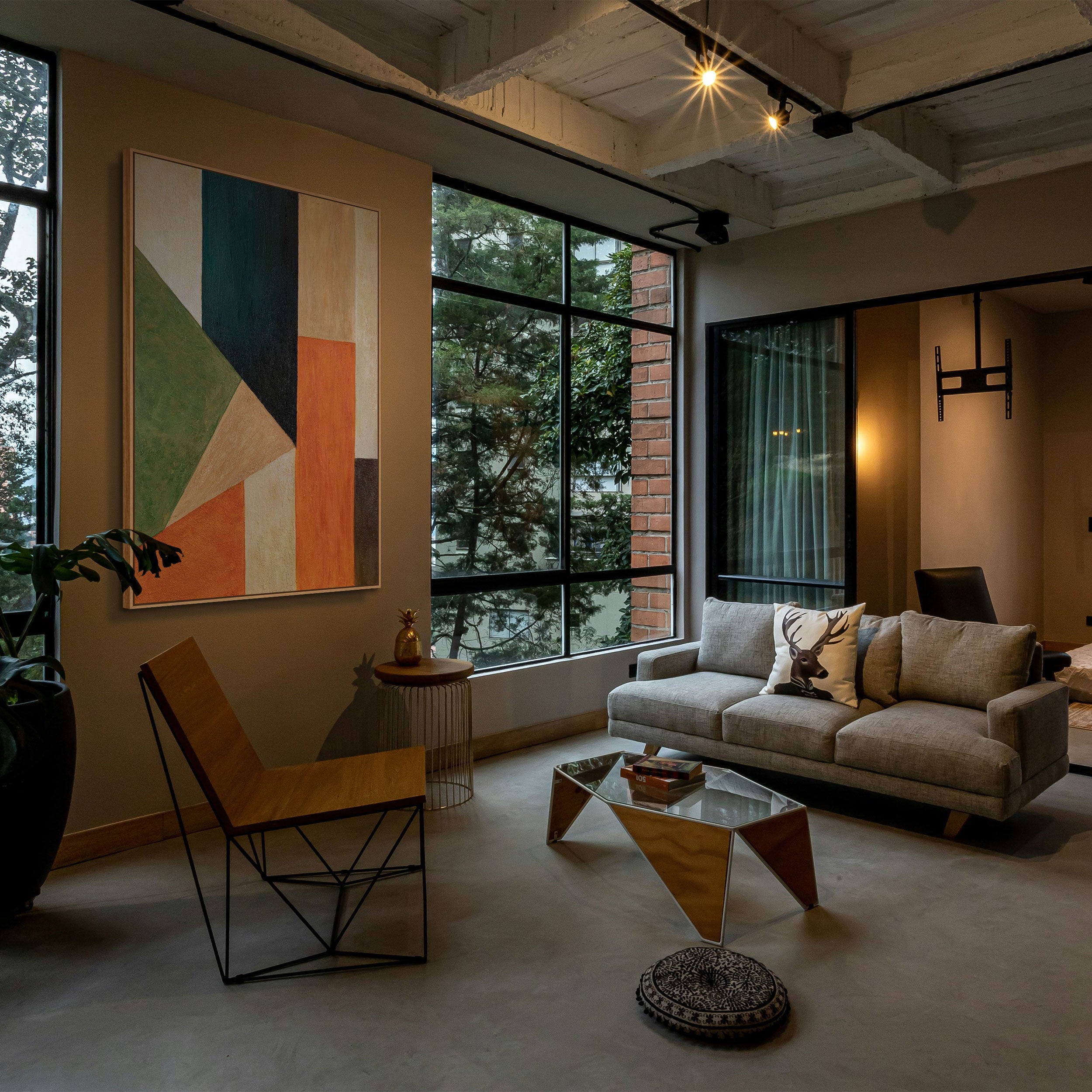 - Stil: Abstrakte Geometrie, moderne Wanddeko