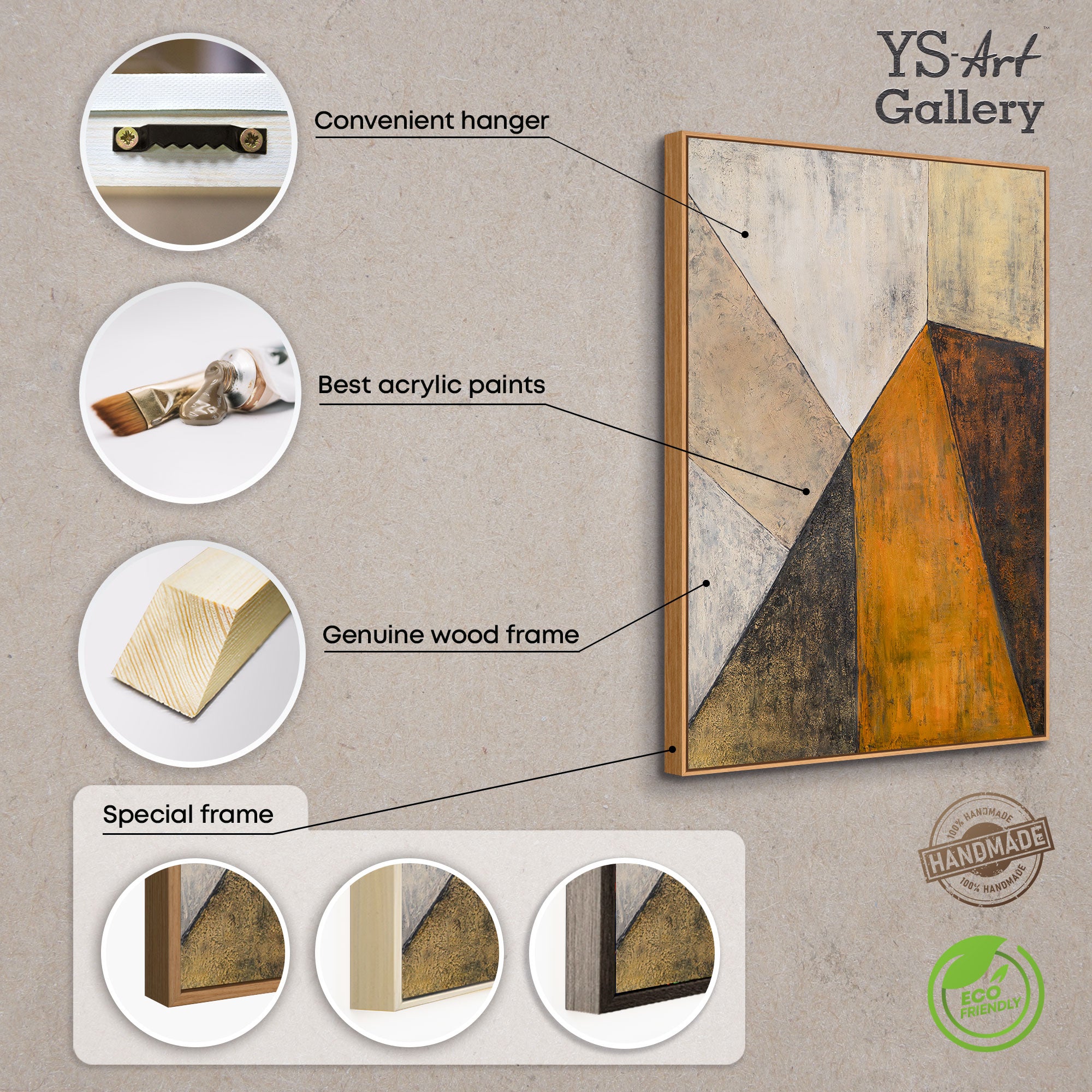 Abstrakte Kunst auf Leinwand mit Rahmen „Begegnung der Ebenen“ - Acrylmalerei in Erdtönen