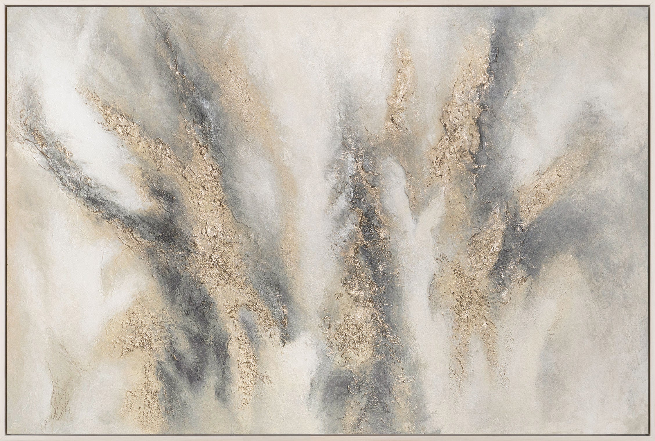 Abstraktes Gemälde Beige Grau – Struktur Leinwandbild mit Rahmen „Wolkenmelodie“