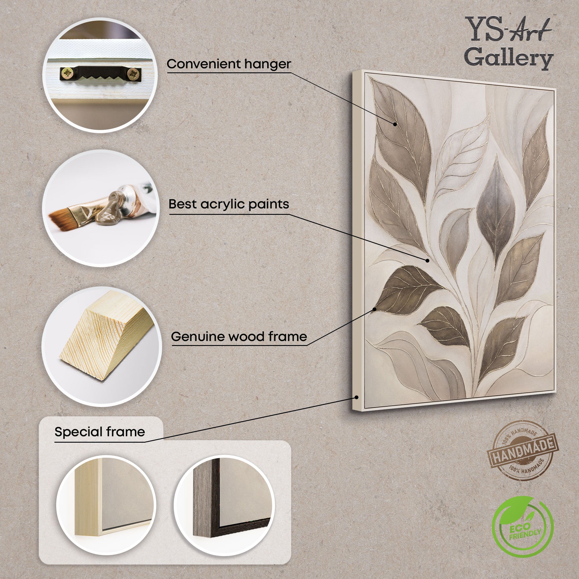 • Handgemalte Acrylmalerei mit Blättermotiv