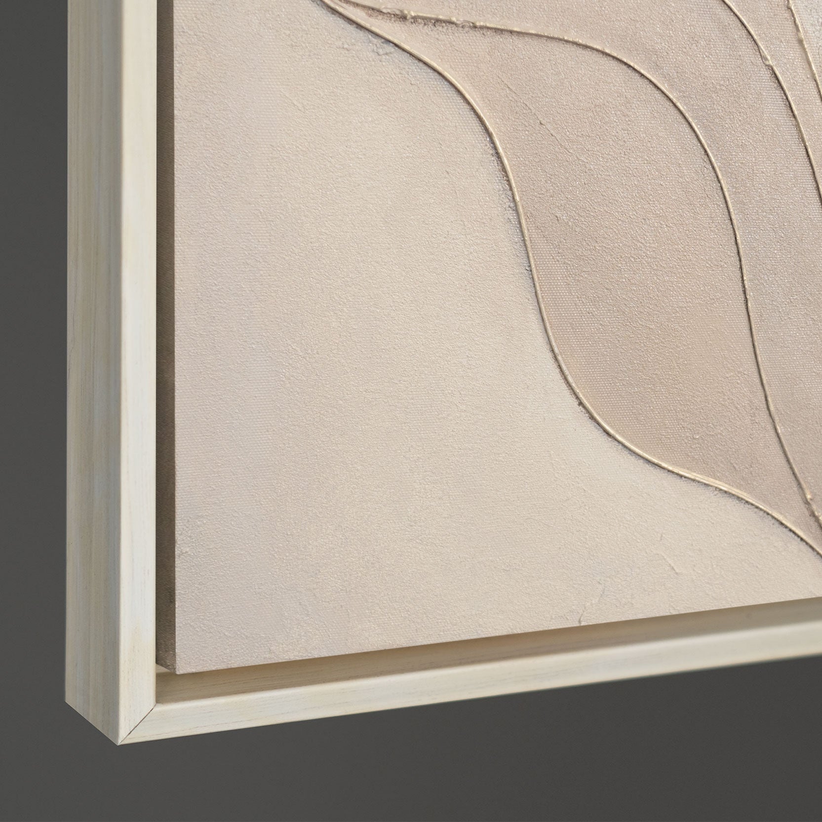 "Vind i bladene" indfanger naturens bevægelse i en blid, struktureret form. De elegant svungne bladformer i harmoniske beige- og bruntoner flyder roligt sammen og skaber et afbalanceret og elegant helhedsindtryk. Gyldne og jordfarvede accenter giver værket dybde og lethed – som et strejf af vind på lærredet.