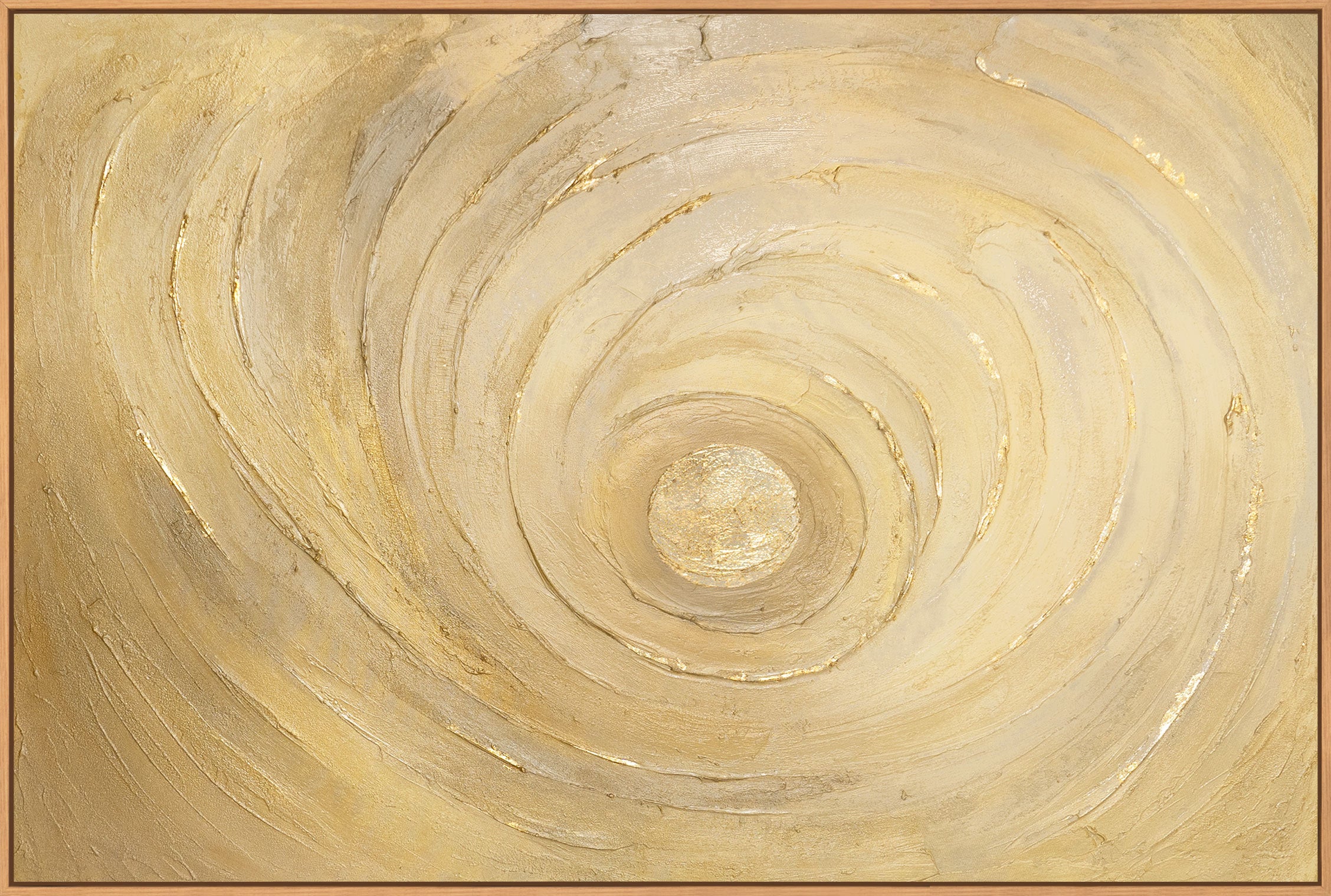 „Kreise der Zeit“ ist ein elegantes abstraktes Acrylgemälde in warmen Gold- und Beigetönen. Kreisförmige Bewegungen und feine Goldakzente erzeugen Tiefe, Ruhe und ein Gefühl von Kontinuität. Die strukturierte Oberfläche reflektiert das Licht sanft und verleiht dem Werk eine hochwertige, zeitlose Ausstrahlung.