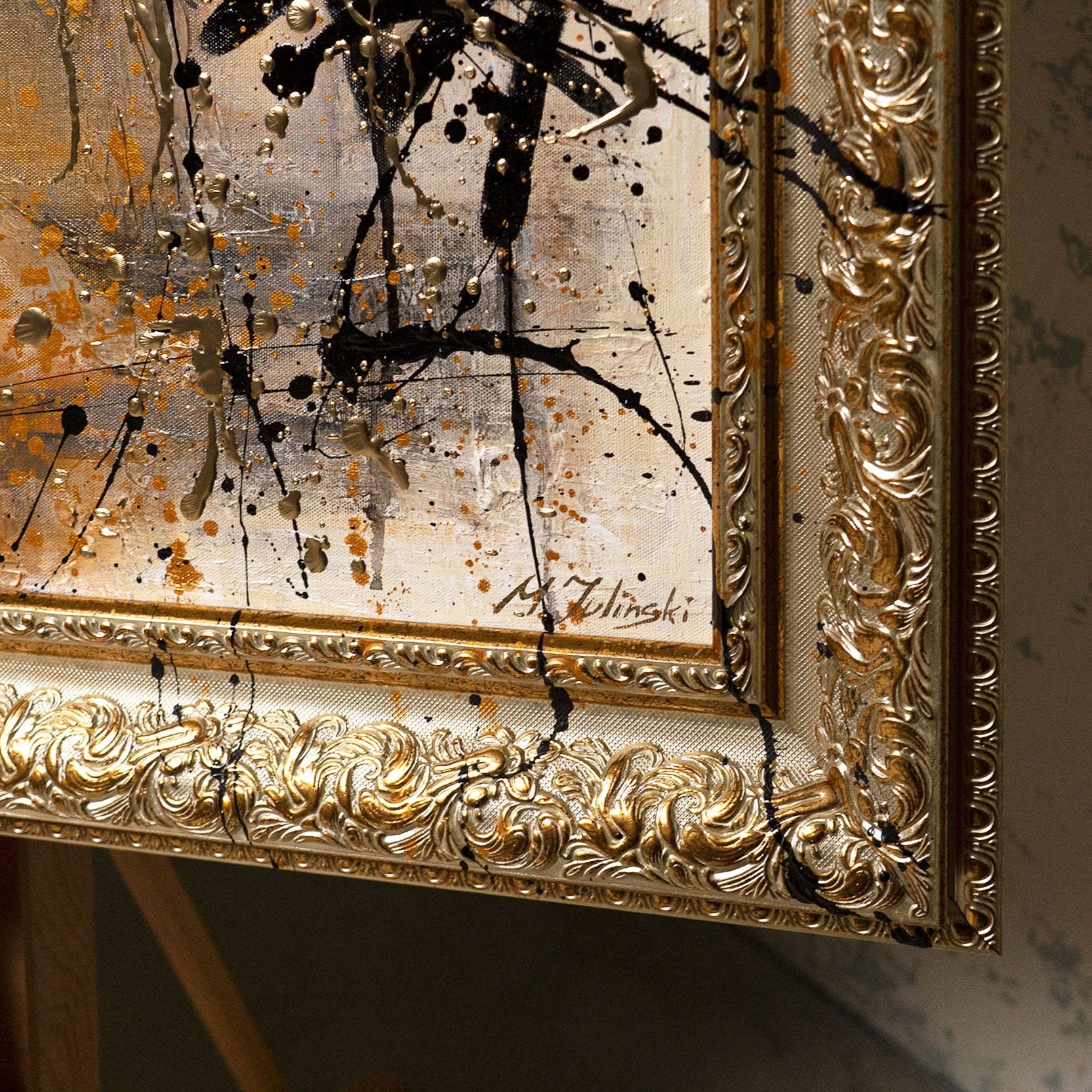 Perfekt til alle, der søger moderne vægdekoration i stuen, abstrakt kunst eller eksklusive malerier online. Dette værk bringer inspiration, luksus og et strejf af urban livsstil ind i dine rum.