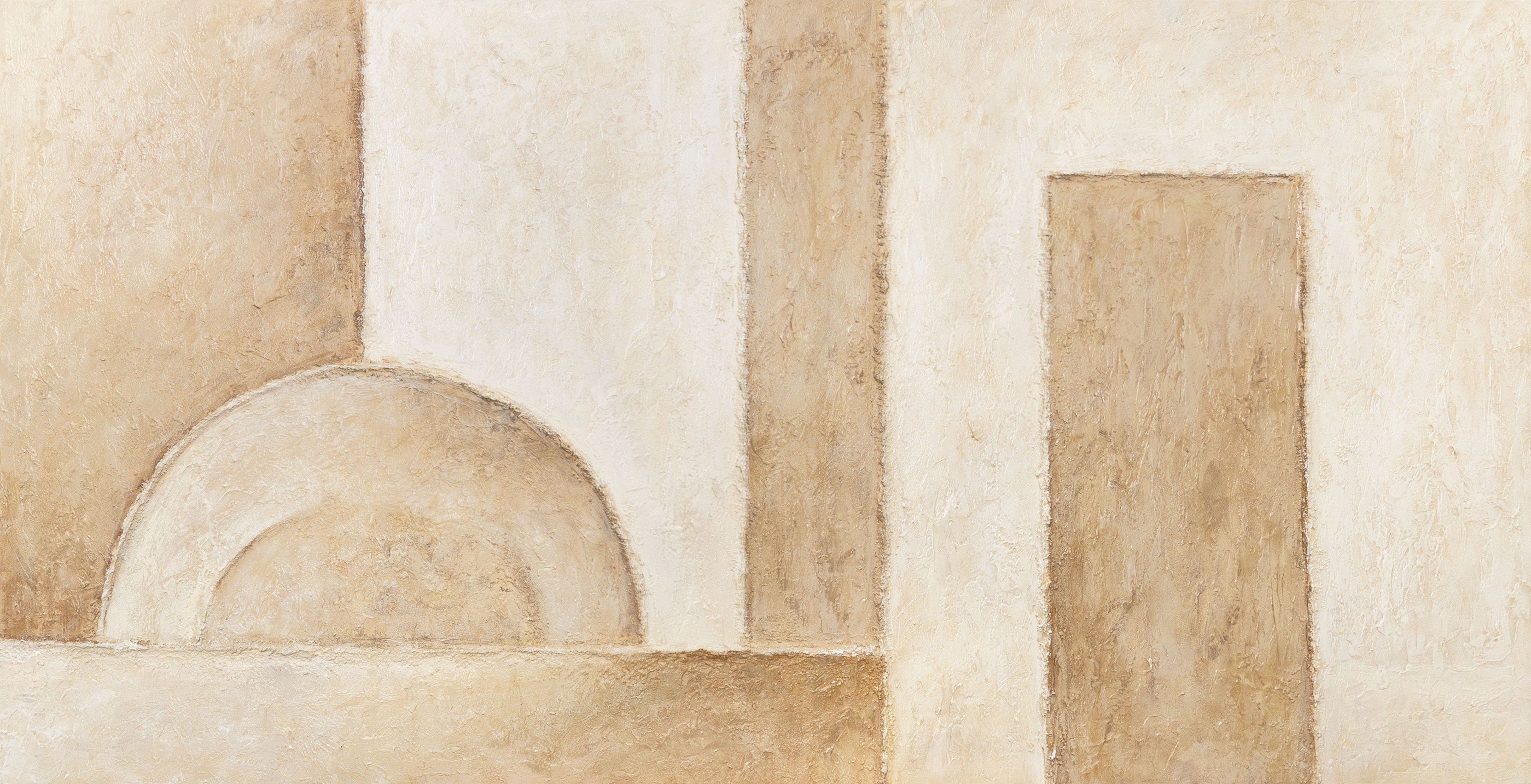 Akrylmaleriet "Rummets former" imponerer med klare, geometriske former i rolige beige- og sandtoner. Den strukturerede overflade tilfører dybde og gør værket levende, mens den minimalistiske komposition udstråler ro og balance. Dette håndmalede unika fremstår som et æstetisk og tidløst midtpunkt i ethvert rum.
