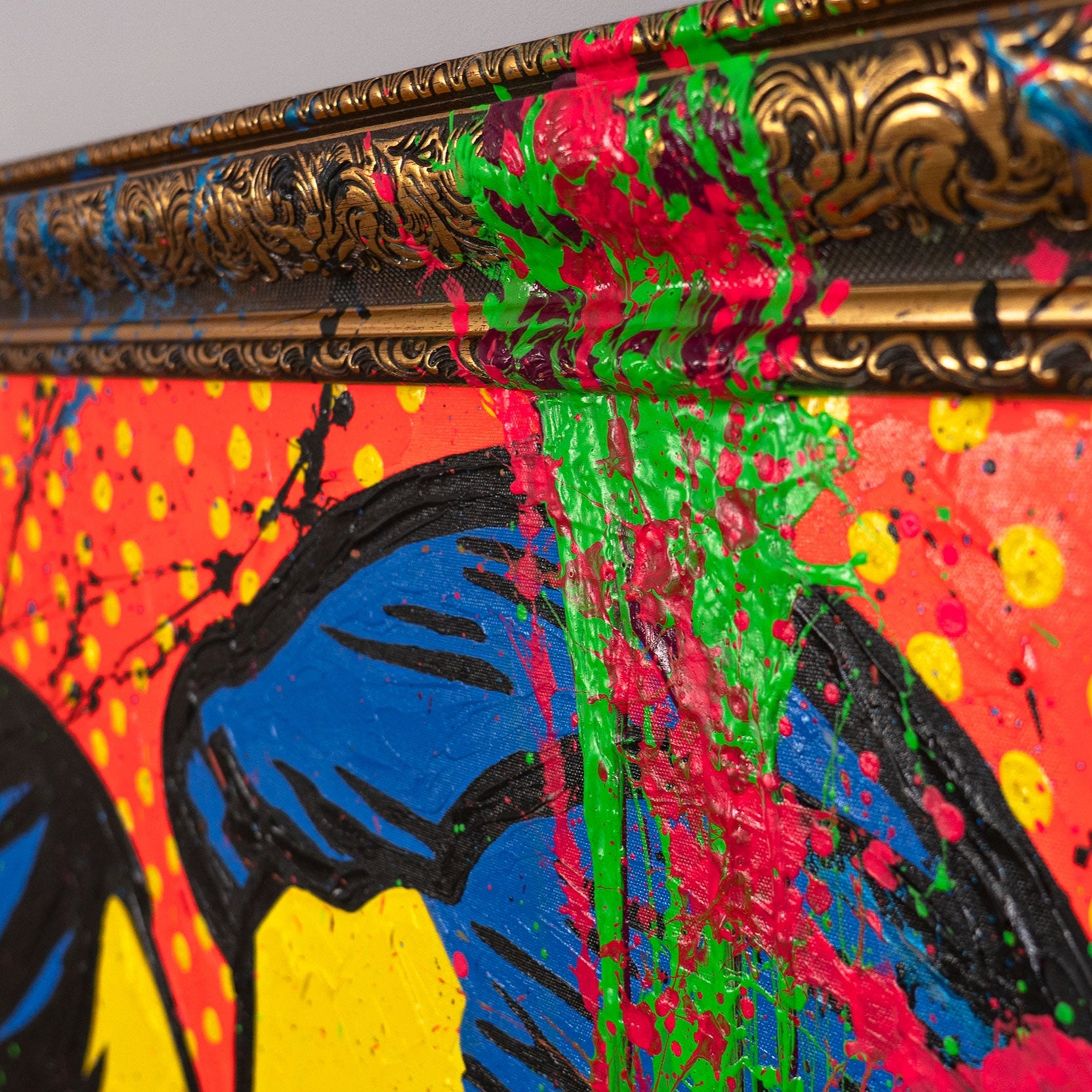 Dette værk er perfekt til alle, der elsker moderne vægdekoration til stuen, ekspressiv abstrakt kunst og eksklusive malerier online. Det bringer passion, Pop-Art æstetik og farverig livsstil direkte ind på din væg.