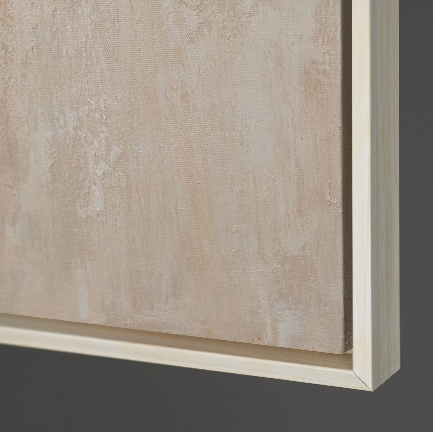 "Lysovergange" er et moderne, håndmalet akrylmaleri, der fascinerer med sin harmoniske kombination af lyse beige, bløde blå og dybe sorte toner. Varme guldakcenter giver maleriet en særlig glød, mens den reliefagtige struktur understreger dybde og bevægelse.