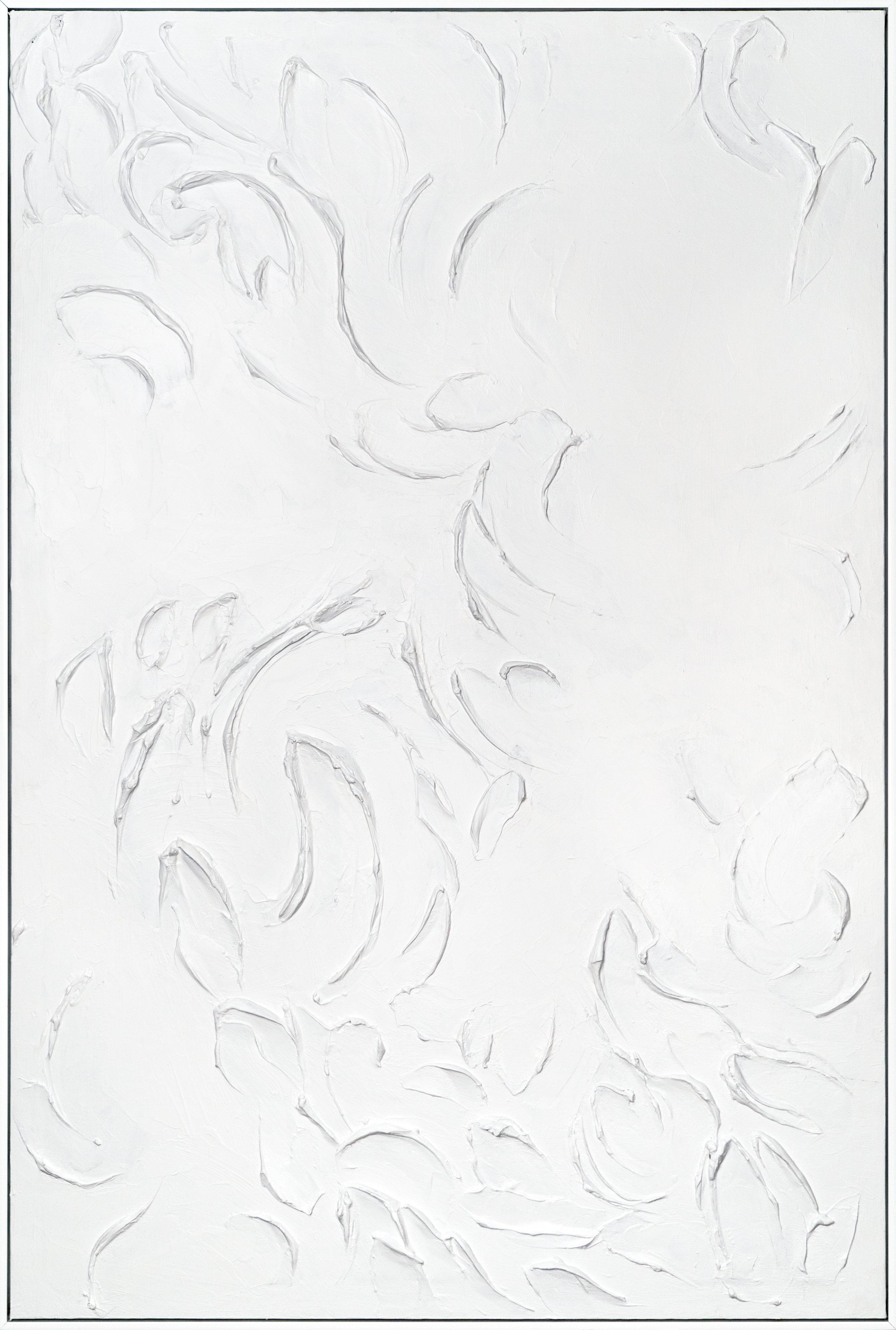 Maleri „Hvid Symfoni“ imponerer med sin minimalistiske farvepalet og markante struktur. De relieffyldte former skaber et fascinerende spil af lys og skygge, der giver dybde og elegance. Den rene hvide overflade virker beroligende og samtidig moderne – et tidløst kunstværk, der passer perfekt til puristiske eller skandinaviske boligindretninger.