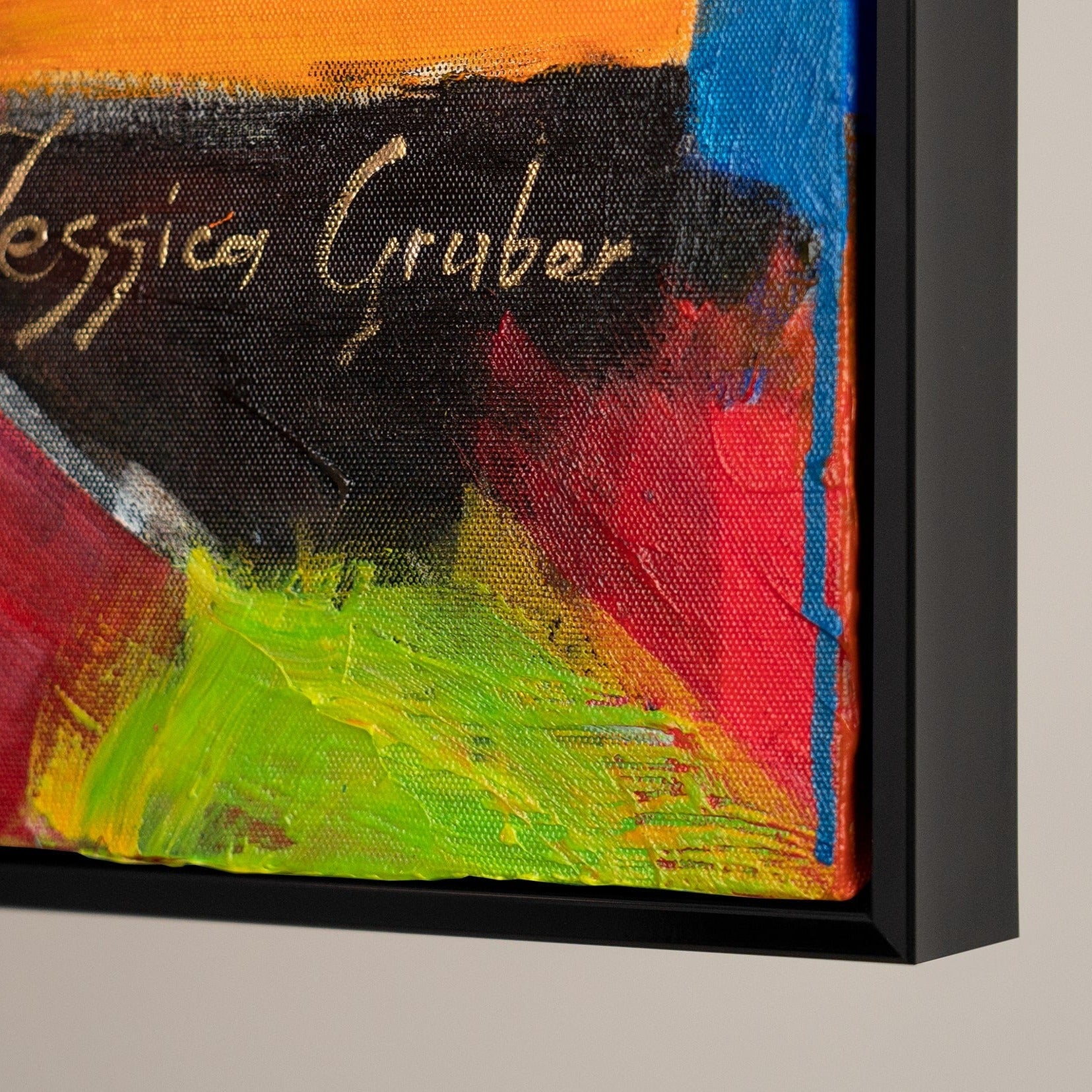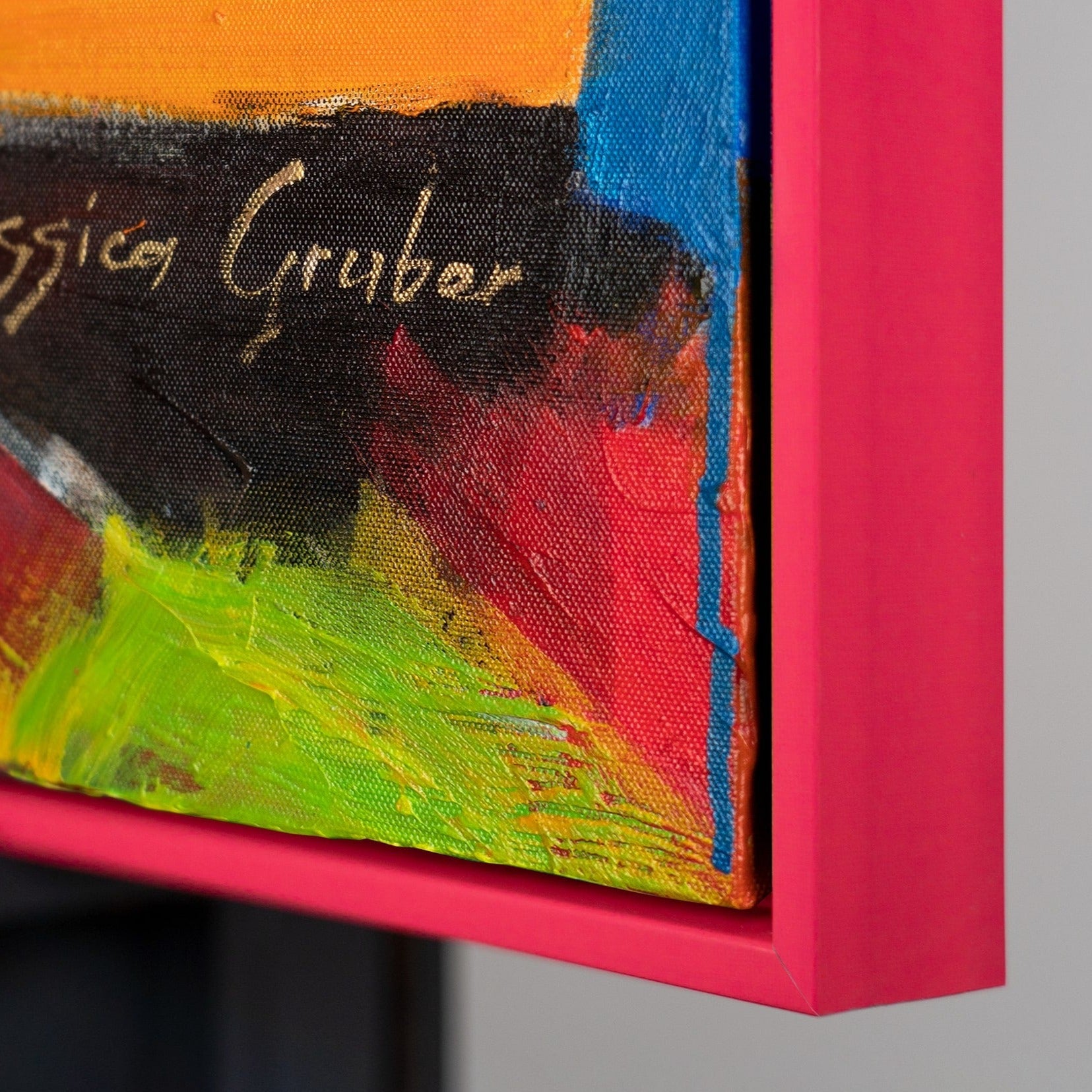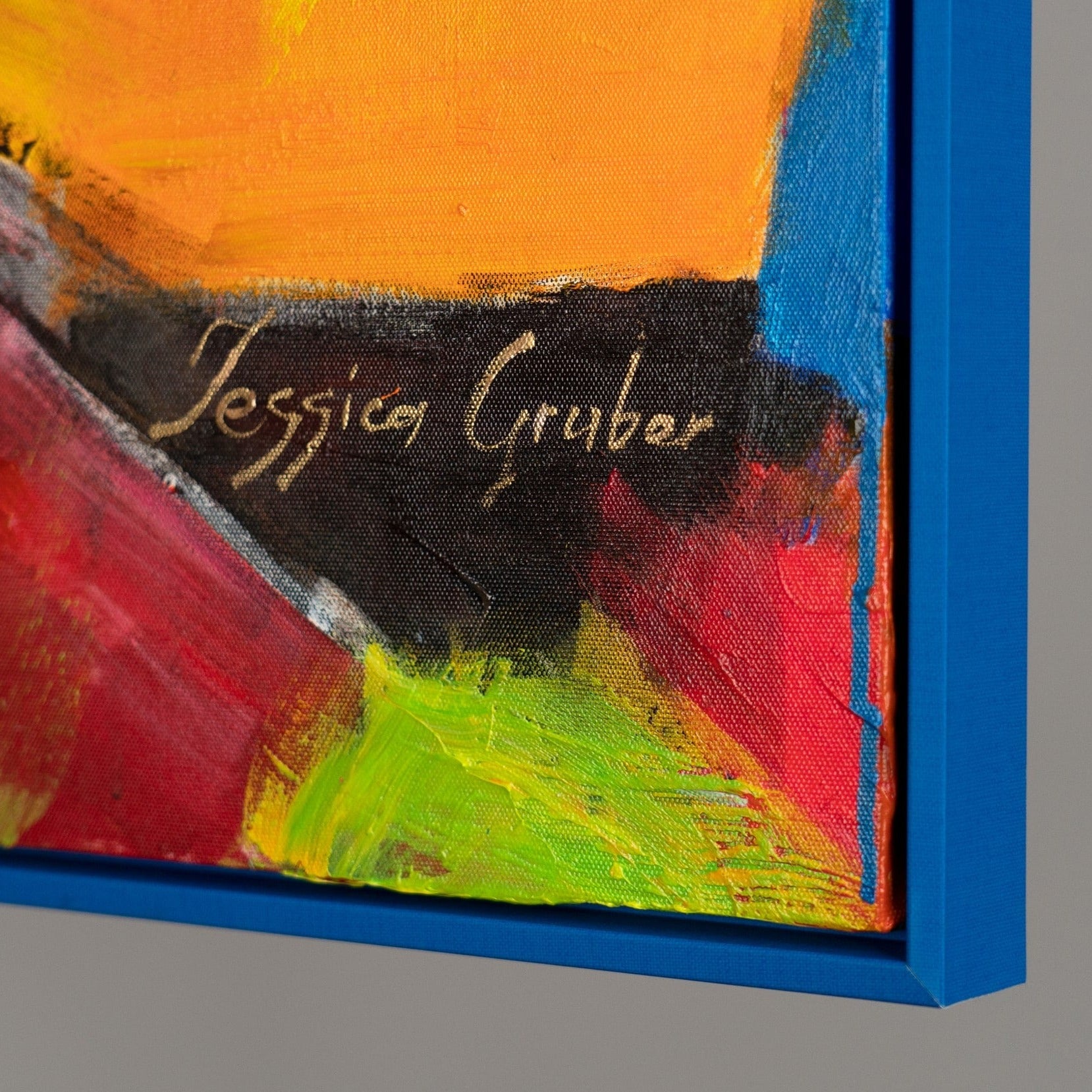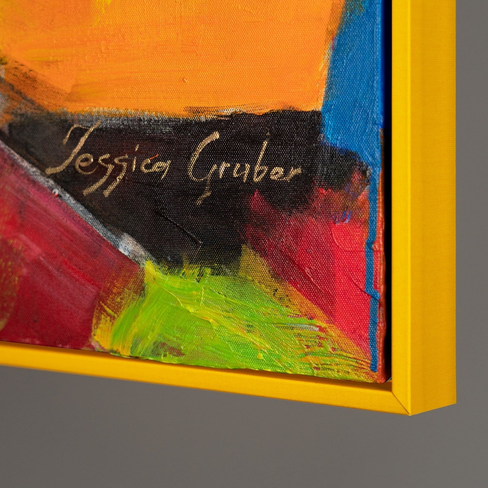 Berig dit hjem med dette farverige, abstrakte kunstværk, der forestiller et livligt og farverigt portræt. Maleriet imponerer med kraftige farvetoner og dynamiske penselstrøg. Det er 100 % håndmalet og fremhæves af en elegant ramme.