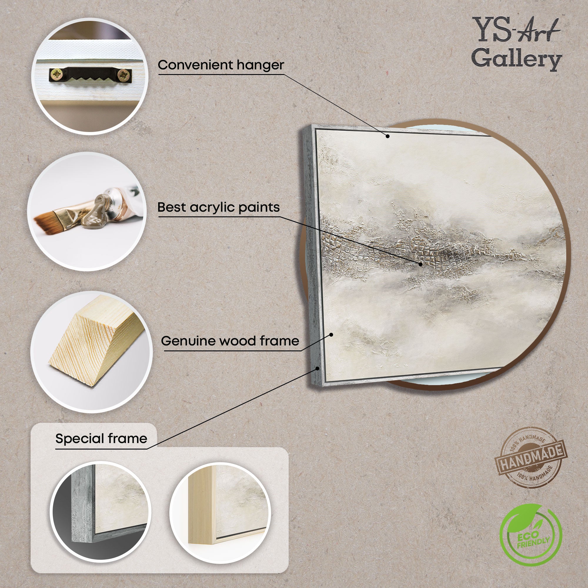 Dette håndmalede akryl-strukturmaleri på lærred er et mesterværk af subtil elegance. Perfekt til moderne, minimalistiske eller skandinaviske interiører, hvor ro og harmoni dominerer. Made in Germany, omhyggeligt lavet, sikkert pakket og med gratis levering – kunst der ånder atmosfære.
