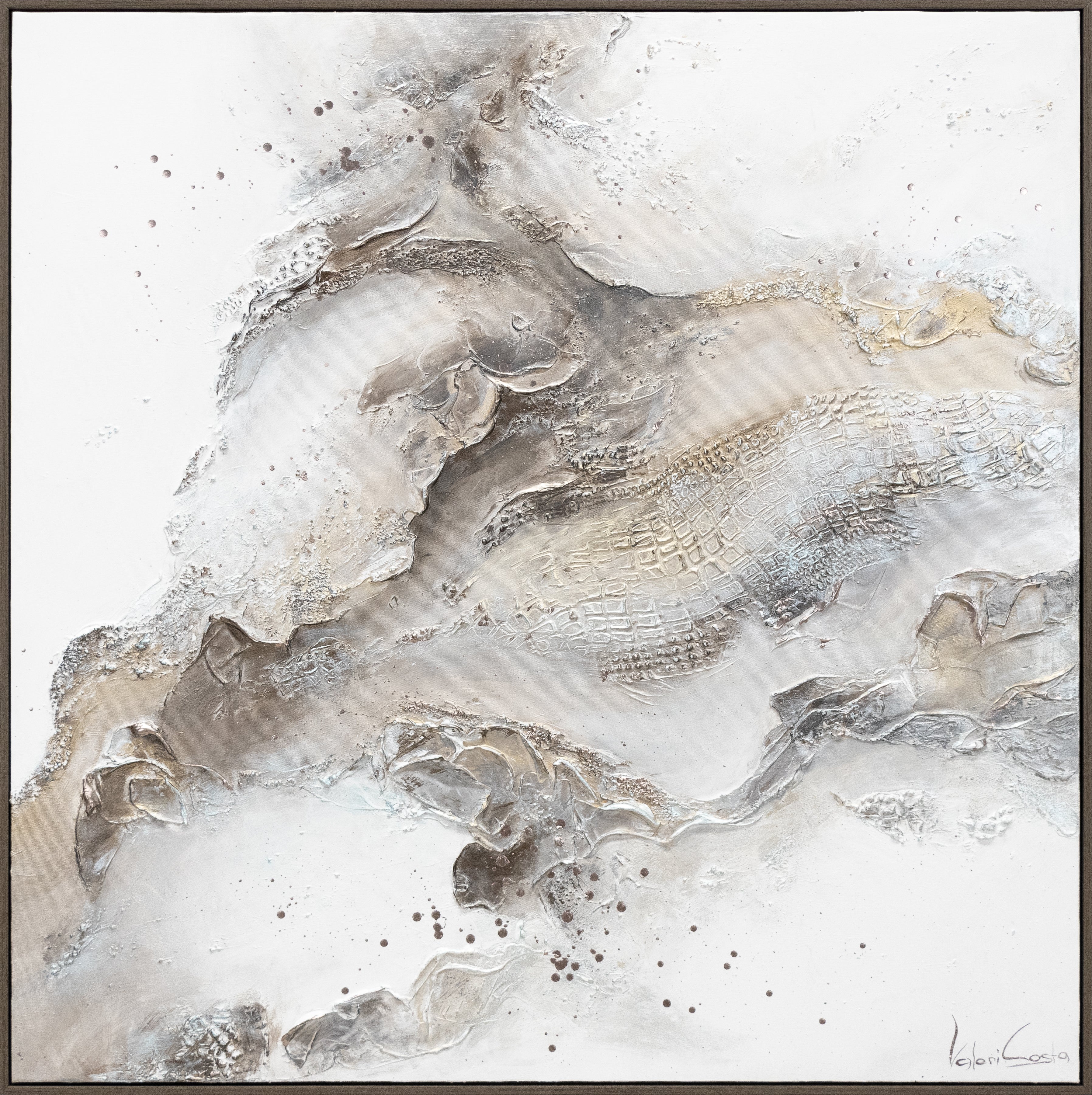 Oplev skønheden i moderne kunst med dette imponerende, håndmalede abstrakte kunstværk på lærred. Den harmoniske kombination af neutrale farver, strukturerede elementer og dynamiske bevægelser skaber en unik visuel oplevelse. Denne komposition indfanger essensen af abstrakt kunst og tilføjer ethvert rum en elegant og nutidig atmosfære. Perfekt til stuer, kontorer eller enhver indretning, der søger et strejf af raffinement.