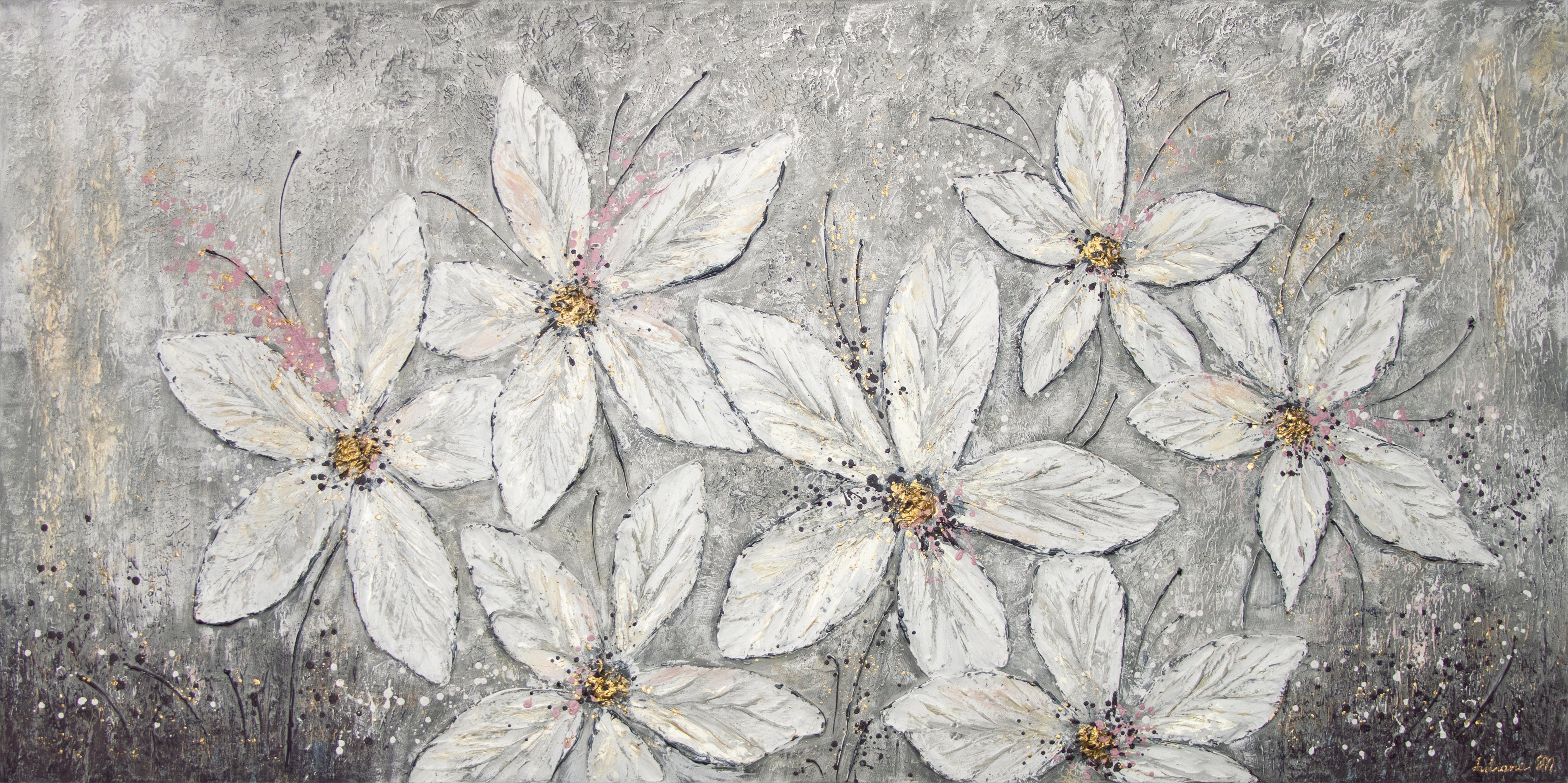 Bløde, store hvide blomster minder dig om varme forårs- og sommerdage i de kolde årstider. Fyld dit hjem med en positiv atmosfære hver dag. Maleriet egner sig perfekt til soveværelse, stue, arbejdsrum eller køkken. Til dette maleri er kun brugt materialer af høj kvalitet.