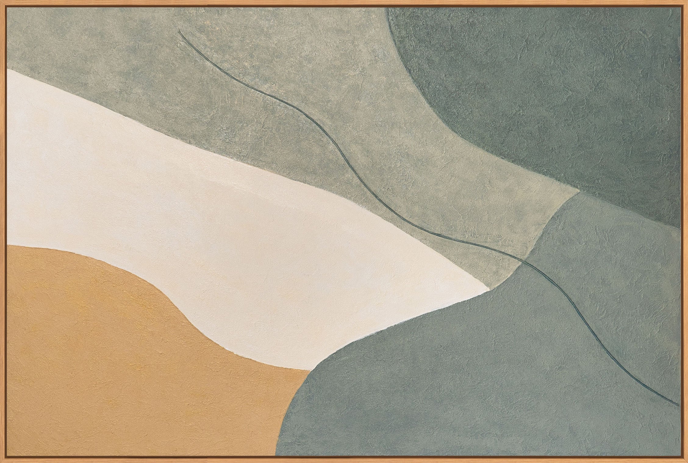 "Eternal Line" repræsenterer kontinuitet og balance i abstrakt form. De klare linjer og beroligende naturlige toner gør dette håndmalede originalværk til et tidløst valg til moderne vægdekoration.