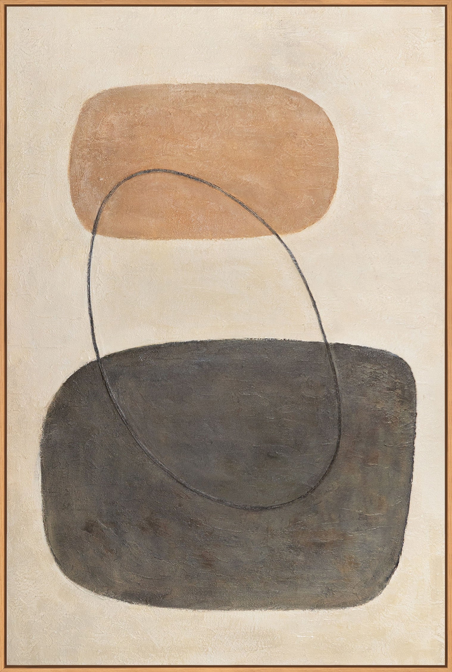 "En balance af kontraster" bringer ro og struktur til rummet. Den klare komposition og naturlige farvetoner gør dette maleri til et stilfuldt fokuspunkt, der skaber balance og blander sig ubesværet med forskellige interiører.