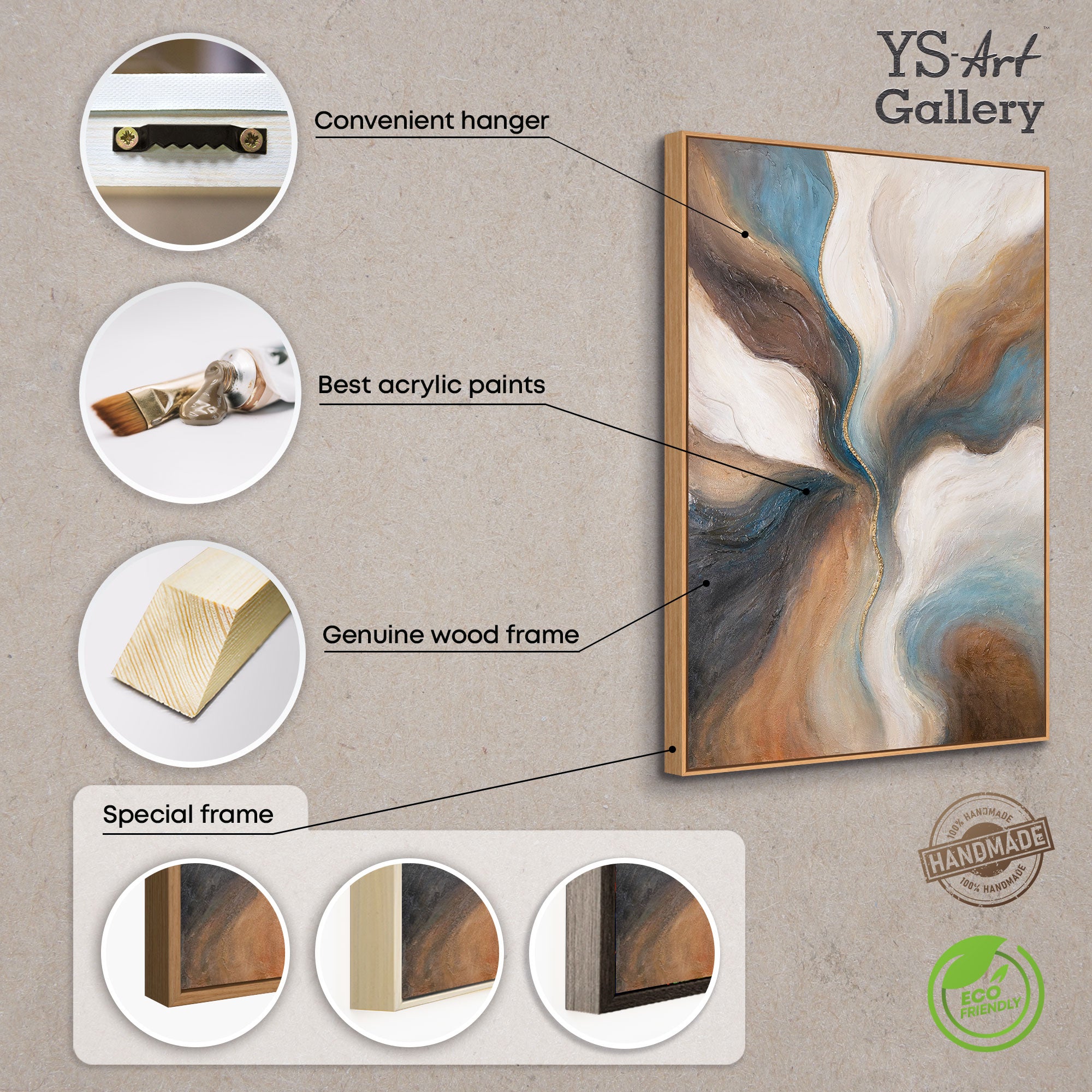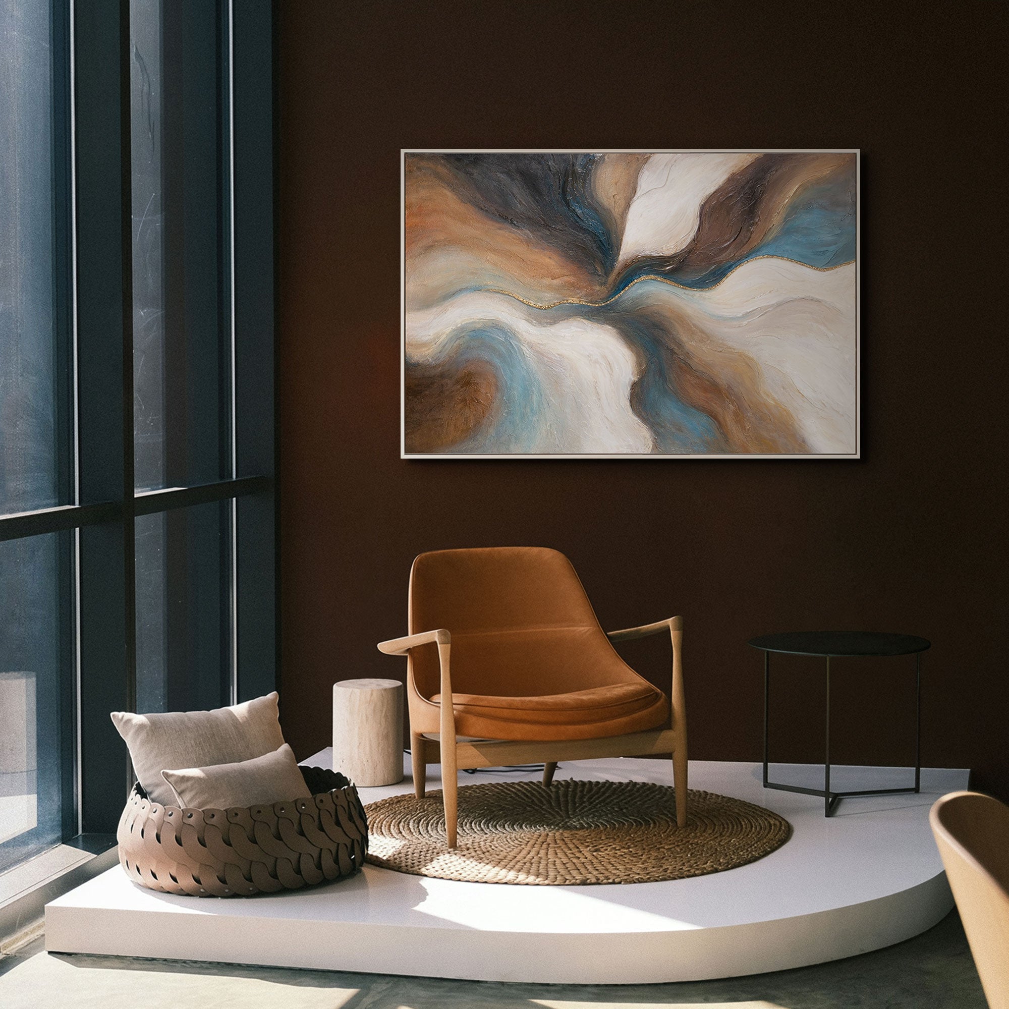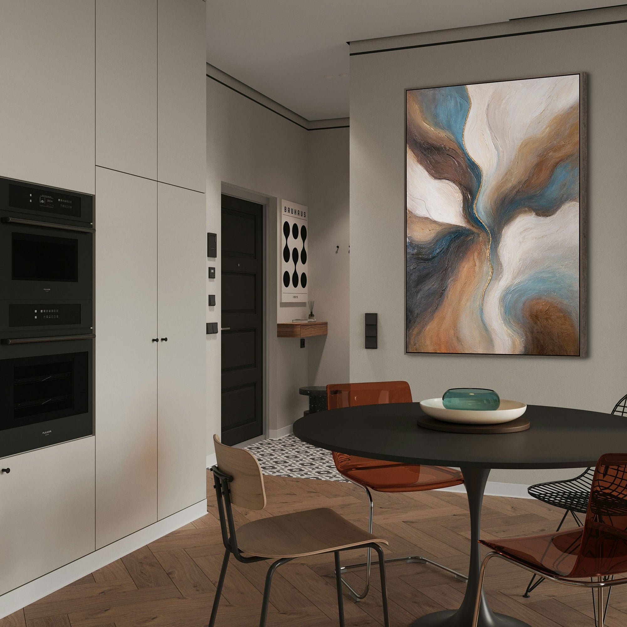 Dette abstrakte kunstværk passer perfekt ind i moderne, minimalistiske og elegante boligstile. Det tilfører stue, soveværelse eller kontor en særlig udstråling og skaber en atmosfære af ro og samtidig kraftfuld energi. Hvert billede er et håndmaleri udført på højkvalitets lærred, spændt på en solid træramme – klar til ophængning.